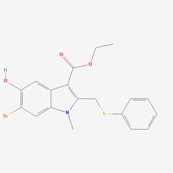 CCOC(=O)C1=C(N(C2=CC(=C(C=C21)O)Br)C)CSC3=CC=CC=C3